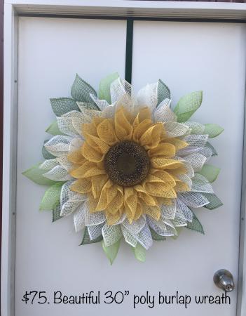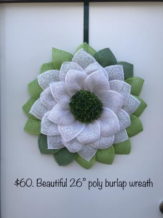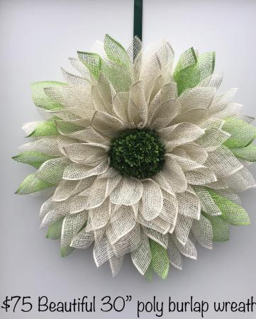 Beautiful poly burlap wreaths! Perfect for Mother’s Day, Birthday or just because you want one! Please feel free to email me with questions.