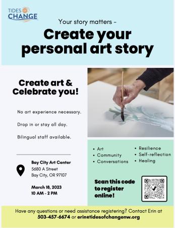 March 18th from 10am-2pm, join Tides of Change partnering with the Bay City Arts Center for an art workshop where you have the opportunity to create your personal art story. Survivors and all who attend will be invited to create art that will be shown in the gallery art show on Friday, April 7th from 5pm-7pm. No art experience is necessary to participate. You may drop in or stay all day, bilingual staff will be available. Create art & celebrate you! Register at the following link: docs.google.com/forms/d/e/1FAIpQLSc1JaQv7z-SMKIhaV23lT5ZMwL6f5tr6HhUu6CBssPFW1ppQA/viewform