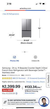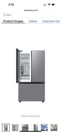 Samsung bespoke counter depth stainless steel fridge with auto fill pitcher and beverage center. We purchased the fridge in July 2022 from Best Buy and love the fridge but we are making changes to our kitchen.