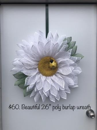 Beautiful custom made poly wreaths! Would make a great Birthday present, Mother’s Day gift, housewarming gift, or just because you want one! I have in stock approximately 12+ wreaths available. Please feel free to contact me with any questions or other wreaths available.
