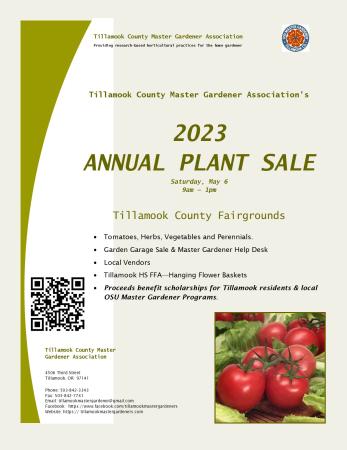 The Tillamook County Master Gardeners Association Annual Plant Sale is Saturday, May 6 at the Tillamook County Fairgrounds 4-H/FFA Livestock Pavilion. Doors open at 9 a.m. and will close at 1 p.m.