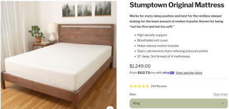 New PNW-made Stumptown Original King size mattress: asking $300 OBO (originally purchased for $1249)
