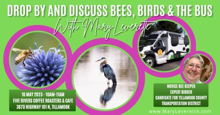 Mary Leverette Novice Bee Keeper Expert Birder Candidate for Tillamook County Transportation District