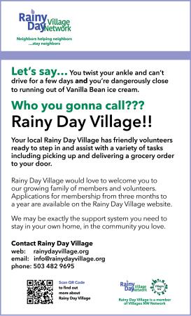 Learn More About Rainy Day Village. Become a Member or a Volunteer. Posted on May 25, 2023May 24, 2023 by North Coast BBQ Submitted By: info@rainydayvillage.org – Click to email about this post Visit our website www.rainydayvillage.org/ to sign up for our mailing list or to become a member or volunteer.
