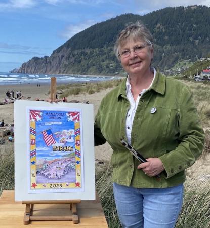 Manzanita’s collectible Independence Day 2023 parade posters will again be on sale at the Friday, June 30th Manzanita Farmers’ Market. Local artist Lori Dillon who created the 2023 poster will be on hand to personalize and autograph copies from 4 to 6 p.m. The commemorative prints cost $30 each.