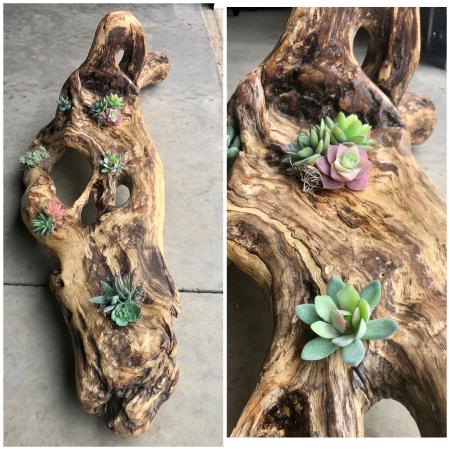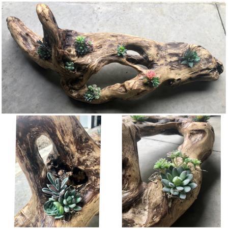 This is an absolutely gorgeous piece of driftwood with artificial succulents. Many hours was spent on cleaning and preserving this piece. Pictures do not do this piece justice! Approx measurements are 50” long 18” wide 16” tall at its highest point. Would make a great gift for any occasion, or just because you want it! Please feel free to email me with any questions or to set up at time to come look at this wonderful piece.