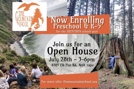 Please join Fire Mountain School for an Enrollment Open House on July 28th from 3-6pm. Now enrolling preschool through 5th Grade and we look forward to meeting you!