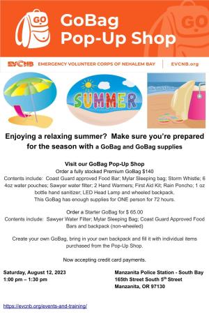 There’s no better time than summertime to get prepared! Visit our GoBag Pop-Up Shop today.