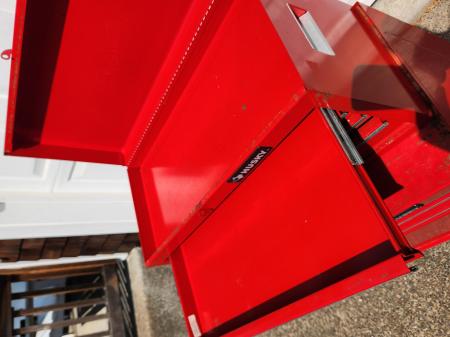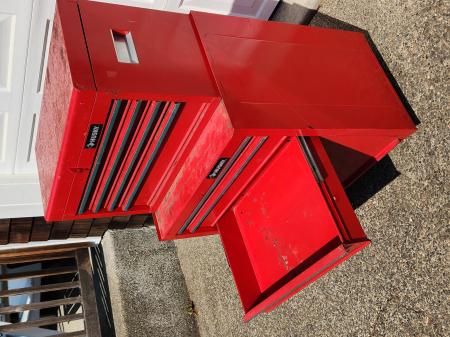 Tool chest and cabinet come in 2 pieces that allow you to use them separately or together according to your needs. The top chest is fully lockable to protect your tools and valuables.