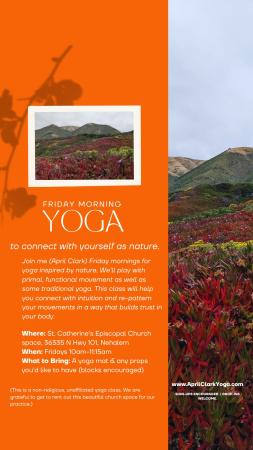 Drop ins welcome or sign up through ApeilClarkYoga.com