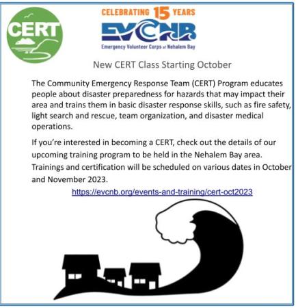 Sign up to become a CERT. You’ll learn important basic disaster response skills. Not only will you be helping your family, but the entire community.