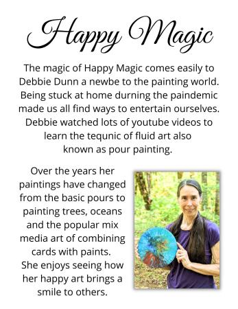 Happy Magic Art Display in the Fireside room Posted on September 21, 2023September 20, 2023 by North Coast BBQ Submitted By: debearth@gmail.com – Click to email about this post Stop in at the Fireside room and see the paintings by Debbie Dunn. You can purchase any of them to have a one of a kind painting of your own.