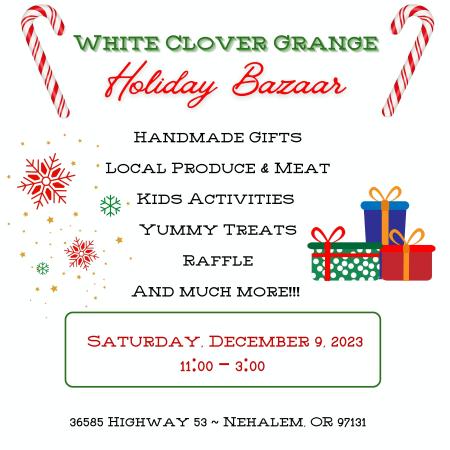 Holiday Bazaar at White Clover Grange Saturday 12/9 11am-3pm