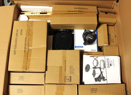 For sale: I bought this and due to health problems, I cannot use it. Simmons SD600 Electronic Drum Kit with Mesh Heads. Drum kit Includes: 1 snare, 3 toms, and 1 bass drum head and pedal. High hat, and two cymbals. Wireless control panel. Can be used w/w-out speakers/headphones. ($599. new) $1000. IN VALUE!