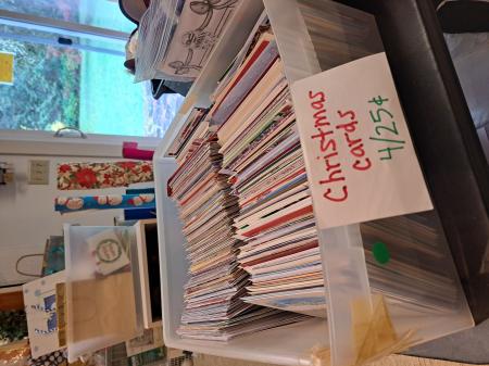 The Hope Chest in Nehalem has a massive amount of Christmas cards with envelopes 4 for .25.