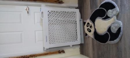 Fisher-Price child or pet gate, the fancy model. It has a pass through you can open, made of mostly metal, and is heavy.