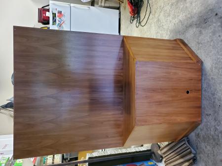 Black Walnut rolling TV stand looking for a new home. This is a custom-made cabinet that is meant to reside in the corner of your room. It has an articulating flatscreen tv mount installed. All you need is $50, a pickup truck and at least 2 friends to help you load and unload it. It is heavy. I have no room, or I would keep this beauty. This deal is located out on the Miami- River Road area. Email for more details.