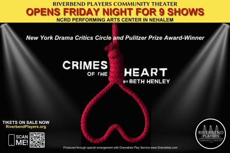 RIVERBEND PLAYERS ‘CRIMES OF THE HEART’ OPENS FRIDAY NIGHT! GREAT SEATS AVAILABLE!