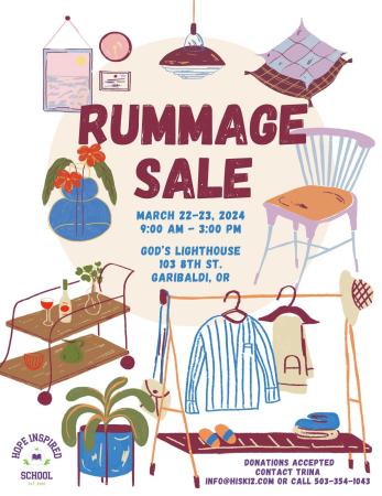 Hope Inspired School in Garibaldi is having a rummage sale/ bake sale fundraiser!