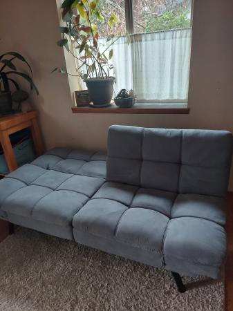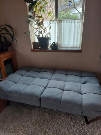 5 1/2 ‘ long couch to bed. Easy to fold. Small space approved. Asking $75.