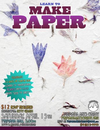 In this workshop we’ll use locally harvested plants and explore the process of turning fiber into lovely paper. We’ll beat, cook, blend form pulp from “seed to sheet.”