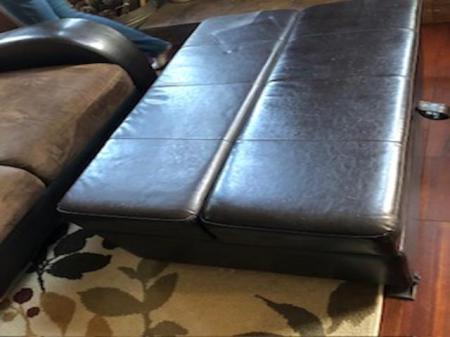 Big ottoman works both as a footrest and a coffee table. Plus, it opens up into a single bed.