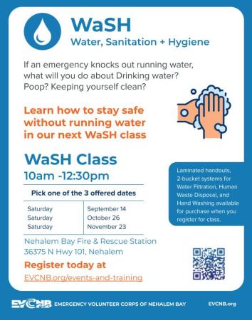 Sign up for WaSH training Saturday, September 14 or October 26 or November 23 (click link below and scroll down)