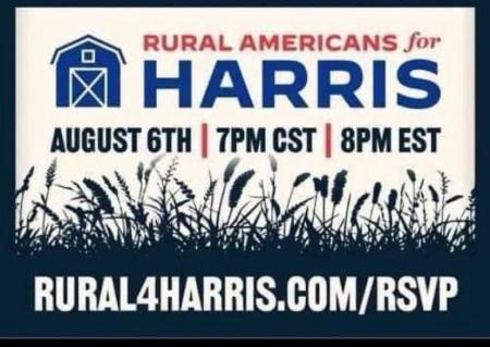 Website/link to RURAL AMERICANS for HARRIS AUGUST 6TH RURAL4HARRIS.COM/RSVP