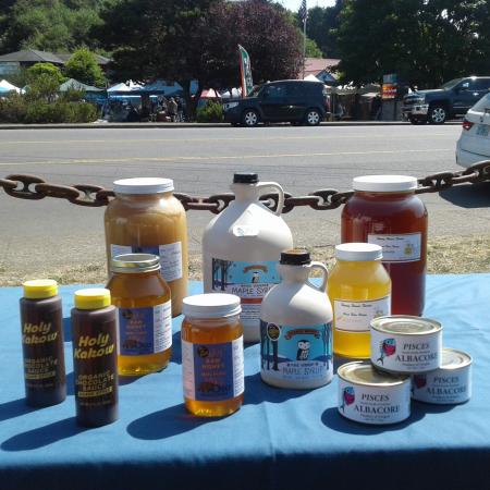 Raw Oregon Blueberry Blossom honey (Gallon – I have two) – $108 each. “Really Raw” Blackberry honey gallon (Blodgett area of coast range – NOT in liquid form) – $100 each. Raw Blackberry honey QUARTS (also Blodgett area – in liquid form) – $29 each. Raw “wild Clover” honey quarts (bright yellow – I have THREE left) – $27 each. Raw Blueberry/Wildflower honey PINTS (Siletz) – $19 each. Real Vermont maple syrup gallon (I have ONE left) – $89. Real Vermont maple syrup QUARTS – $28 each. HOLY KAKOW OG chocolate sauce (Sisters) – two-for-$15. North Pacific coast caught Albacore tuna (7.75 oz can – lightly salted) – $11 each.