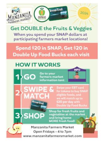Oregon Trail cardholders: this post is for you! Double your spending power at the Manzanita Farmers Market, Fridays from 4 to 7. We match your SNAP dollars with FREE produce coupons up to $20 per market day. Fill your market basket with fresh fruits & veggies and support your local farmers at the same time!