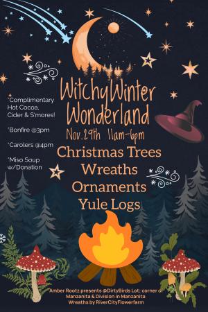 Join Amber Rootz on the Dirty Birds lot on the corner of Manzanita and Division in Manzanita for their 1st Annual Winter Witchy Wonderland and Christmas Tree Sale.