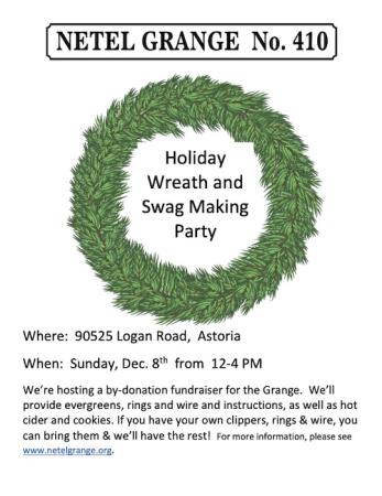 The Netel Grange is hosing their annual by-donation Holiday Wreath and Swag Making Party fundraiser!