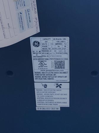 GE Dehumidifier for sale, model ADEL50QZL1. 50 pint capacity. Just over a year old. Some cosmetic scuffs but in good working condition. Asking $130. This model sells new for $270. Located in Seaside.
