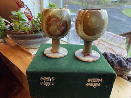 Gorgeous Onyx Wine Goblets Posted on December 5, 2024December 5, 2024 by North Coast BBQ Submitted By: lynnleveringthomas@gmail.com – Click to email about this post Brand new carved onyx wine goblets. Beautiful banded colors of nature. Comes in a lovely box. $25