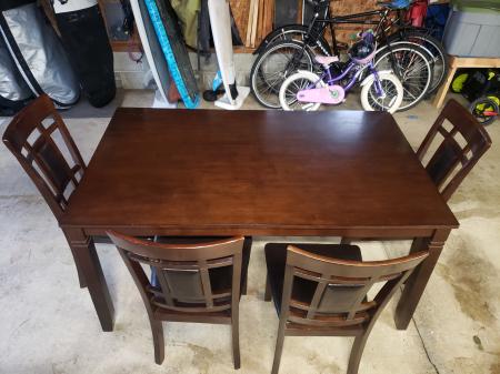 Table w/ 4 chairs & bench Posted on December 28, 2024December 27, 2024 by North Coast BBQ Submitted By: eahrosecity@gmail.com – Click to email about this post Decent condition, a couple scuffs here & there. 60″ L x 36 W x 30″ H $100 OBO Pick up only