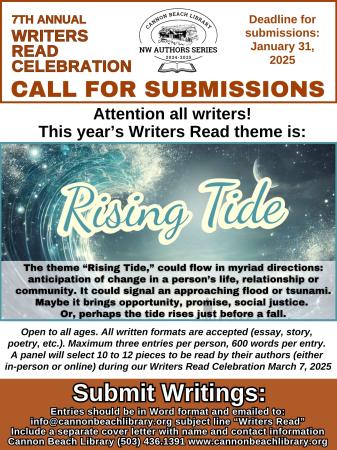Submissions for the Cannon Beach Library’s Writers Read Celebration are due on Jan. 31.