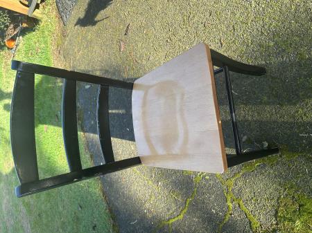 Used dining table 3’ X 5’ and 6 chairs. Some small scratches but in very usable shape. Legs are removed for ease of transport.