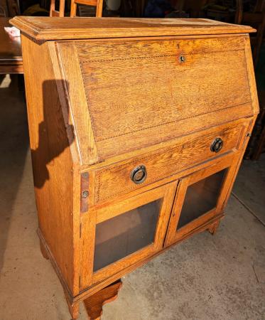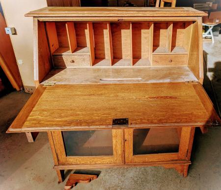 For Sale Unique Antique Oak Secretary Desk with Leaded Glass Shelves