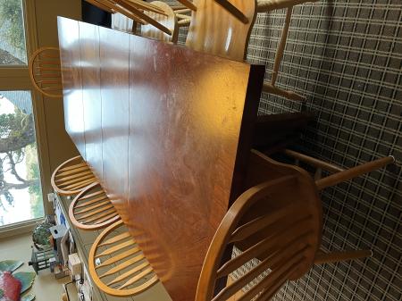 Large dining room table with two center inserts Posted on April 2, 2025April 2, 2025 by North Coast BBQ Submitted By: Talktomudd@gmail.com – Click to email about this post Table is 98 1/2 inches long and 40 inches wide with both inserts. Inserts are 18“ x 40“ Table is very sturdy Call 503–999 –8940