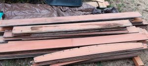 Redwood boards salvaged from recycled water tanks. Over 1000 linear feet available. 3/4″ x 7 – 7-1/4″ wide. variable lengths from 3 – 12 feet.