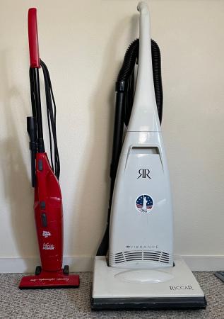 Standard size Riccar Vibrance upright, about 11 years old, great working condition, includes 3 vacuum bags.