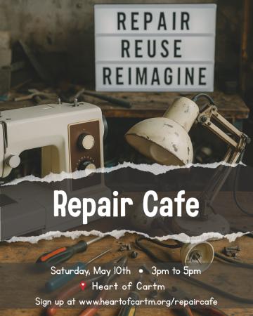 Now that Heart of Cartm has a dedicated workshop space next to its creative reuse store, we’re dreaming big about how to grow our repair offerings. Have an idea, a repair need, or a skill you’d like to share? Talk with us at the Repair Cafe this Saturday.