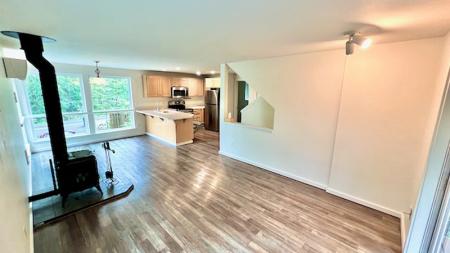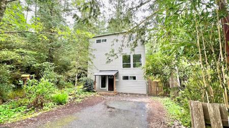 THIS HOUSE is 1500 square feet spread over three floors, conveniently located between Manzanita and Nehalem, tucked in the trees with decks off the living room and one of the bedrooms. First floor is an oversized bedroom (or office or guest room or whatever you need) and laundry room and closet. Second floor is open plan living, dining, and kitchen with lots of windows and a full bath. Third floor is two bedrooms and jack and jill bathroom. There is a new storage shed, new heat pumps on two floors, new kitchen appliances, and a new washer and dryer. Fully fenced backyard, no lawn to worry about. Pets ok.