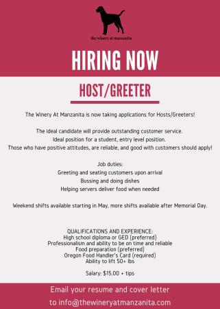 Hiring for Summer Posted on May 9, 2025May 9, 2025 by North Coast BBQ Submitted By: info@thewineryatmanzanita.com – Click to email about this post Hiring for greeters for summer! Great entry level job. Email info@thewineryatmanzanita.com