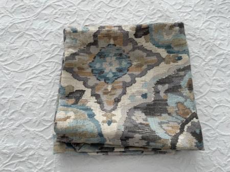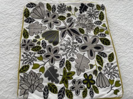 Decor pillow covers, 6 decor pillow covers, the navy blue are 20″ by 20″ linen, that can be laundered. The crewel covers are 20″ by 20″ and cotton that can be laundered. The Medallion covers are custom made, cotton and they can be laundered, the measurement on these are 22″ by 22″. All are in excellent condition. they all have zippers, the medallion material is from Ballard Design.