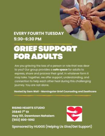Adult Grief Support Group Starts this week, at Rising Hearts Studio