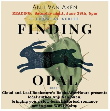 Cloud and Leaf Bookstore’s #BooksAfterHours presents local author Anji Van Aken reading from the first in her series, a slow-burn historical romance set in post-WWII Malta.