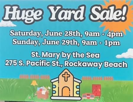 HUGE Yard Sale at St. Mary’s By The Sea in Rockaway Beach Saturday ,June 28 (9 AM to 4 PM) Sunday , June 29 (9 AM to 1 PM)