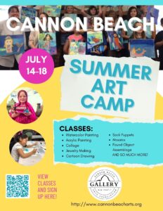 CANNON BEACH, OR – The Cannon Beach Arts Association is pleased to announce its upcoming Summer Art Camp for children, scheduled to take place from July 14th to July 18th. This annual camp offers a creative and educational experience for young artists aged 4 – 16 years old.
