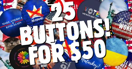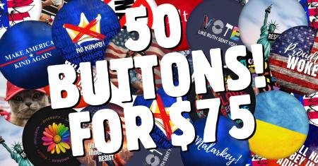 Fundraise for your organization with low priced Resistance, Anti-Fascist, Pro-Democracy buttons.